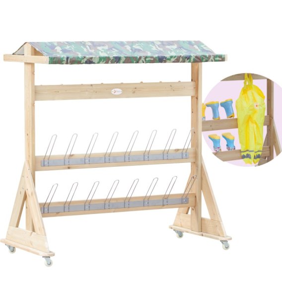 Wieszak od renomowanej marki Classic World to idealne dopełnienie placu zabaw! Produkt jest wyprodukowany z wysokiej jakości drewna, pomalowany nietoksycznym impregnatem, w pełni bezpiecznym dla dzieci. Można powiesić np. kalosze oraz kurtki przeciwdeszczowe. Posiada daszek w stylu moro oraz kółka do łatwego przesuwania. Idealny do instytucji i nie tylko. Produkt wysokiej jakości.