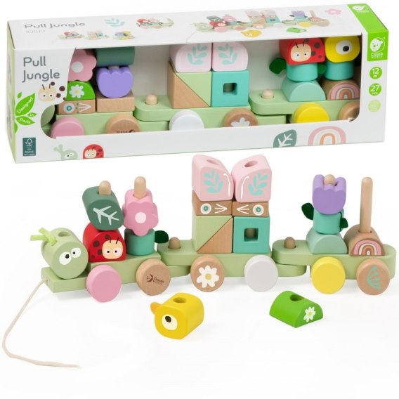 Drewniana Kolejka Gąsienica od Classic World to zabawka w pięknych pastelowych kolorach,która nie tylko cieszy oko naszych pociech, ale także rozwija wyobraźnię, koordynację i zdolności manualne.Motyw dżungli wprowadza dzieci w świat przyrody, uczy je o zwierzętach, roślinach i owadach, rozwija zainteresowanie przyrodą i świadomość ekologiczną.Dzieci mogą dowolnie mieszać i dopasowywać te elementy, tworząc wciągające i żywe doświadczenie inspirowane dżunglą. Jeśli stawiasz na dobry rozwój swojego dziecka powinieneś wiedzieć, że Kolejka Gąsienica wspiera rozwój małej motoryki - motoryką małą określa się ruchy palców i dłoni. Są to ruchy angażujące niewielką część ciała, jednakże wymagające koncentracji uwagi oraz skupienia na wykonywanej czynności. Zabawka wykonana jest z wysokiej jakości drewna. Kolejną zaletą jest gładko oszlifowana, przyjemna w dotyku powierzchnia, zapewni ona BEZPIECZNĄ zabawę dziecka. Kolejka Gąsienica ma także funkcję ciągnięcia za dołączony sznureczek- twoje dziecko na pewno nie będzie się nudzić!