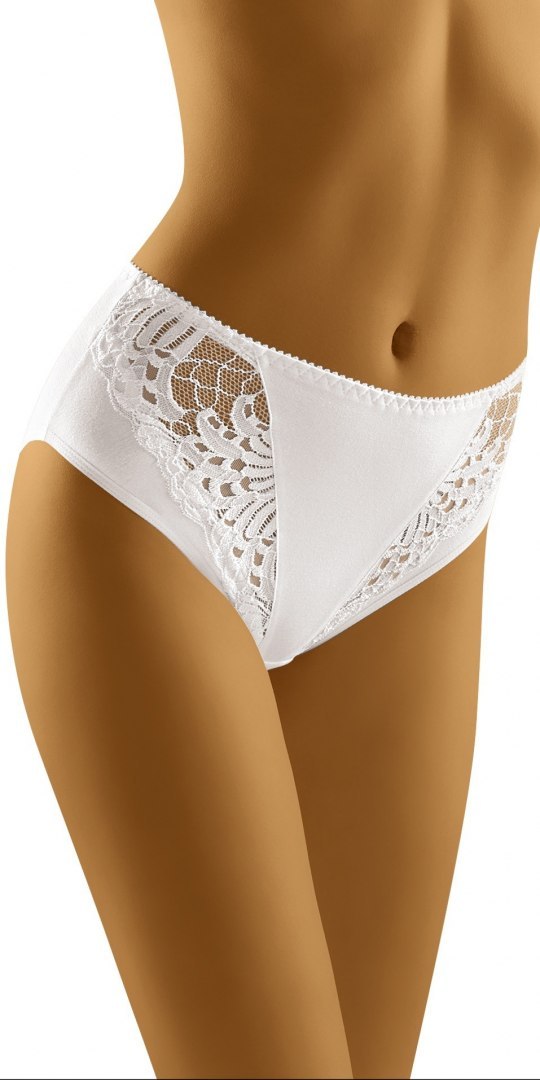 Pełne figi z ekologicznej bawełny. Przód zdobiony efektowną koronką, tył gładki.