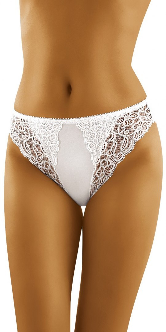 Kobiece figi wykonane z gładkiej mikrofibry. Komfortowe figi idealnie przylegające do ciała. Przód zdobiony ażurową koronką, tył gładki. Figi świetnie podkreślają talię i dyskretnie odsłaniają biodra. Wykonane z elastycznego poliamidu, dzięki temu są bardzo komfortowe.