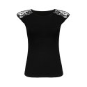 Urocza koszulka damska z krótkim rękawem wykonana z miekkiej bawełny. Na ramionach koronkowe aplikacje o kwiatowym motywie. Tył gładki.