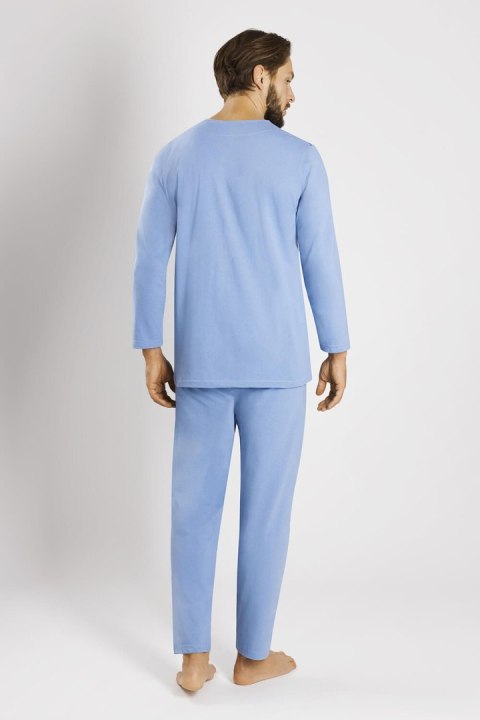Dwuczęściowa, rozpinana na guziki piżama wykonana z wysokiej jakości wzorzystej bawełny z kieszenią po jednej stronie. Dekolt w serek. Spodnie długie, jednolite. Model występuje w wielu wzorach i wersjach kolorystycznych.