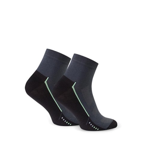 Krótkie sportowe skarpety męskie o oryginalnym wzornictwie, wspaniale wpisują się w sportowy styl życia. Idealne w okresie wiosenno-letnim. Doskonała jakość, unikalny wzór i bogata gama kolorystyczna (kilkadziesiąt wzorów) wpływają na atrakcyjność wyrobu.