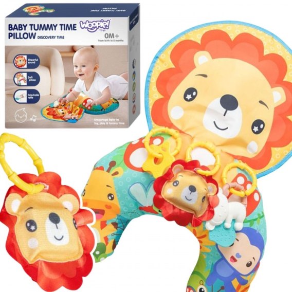 Wielofunkcyjna poduszka interaktywna rogal od marki WOOPIE BABY to rewelacyjny pomysł na pierwszą poduszkę dla twojego dziecka. Grzechotki oraz gryzak są odczepiane, dlatego można wykorzystać je przy wózku, nosidełku, foteliku samochodowym oraz do samodzielnej zabawy. Wygodna do zabawy na brzuszku, a gdy dziecko podrośnie - doskonała podpora podczas siedzenia, czy później jako poduszka podróżna na szyję dziecka- poduszka zrobiona jest tak aby rosła z maluchem i była z nim na różnych etapach życia. Urocza grafika z szeleszczącą podkładką i kolorowymi grzechotkami zapewni wiele wesołej zabawy każdemu maluszkowi. Żywe kolory zwrócą uwagę i wspomogą zdolność rozróżniania kształtów i barw. Grzechotki pozytywnie wpłyną na rozwój słuchu i koordynację rączek- można pozwolić dziecku swobodnie nimi się bawić lub dopiąć do miękkiego wałka. Przede wszystkim marka WOOPIE BABY zaprojektowała poduszkę tak, aby twoje dziecko było bezpieczne i rozwijało się dobrze.