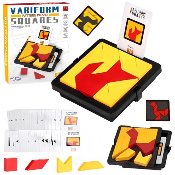 Tangram Gra Logiczna Kieszonkowa od firmy WOOPIE to gra, która pozwala rozwijać umiejętności spostrzegawcze jak i kreatywne. Celem gry jest ułożenie z dostępnych elementów określonych wzorów przedstawionych na kartach. Gracz musi dopasować klocki tak, aby odwzorować wzory, nie pozostawiając pustych miejsc ani nie nakładając elementów na siebie. Dziecko dzięki różnym drewnianym klockom może układać wiele wzorów, każdy w coraz to cięższej kategorii. Przez co może ono rozwijać wyobraźnie i ćwiczyć logiczne myślenie.Ta gra jest również ćwicząca pamięć dzięki dolnej szufladce, której można schować karty. Jest to gra dla osób w każdym wieku ! Przez jej kompaktową wielkości może posłużyć jako rozrywka podczas podróży jak i w domu. Idealna na prezent dla każdego.