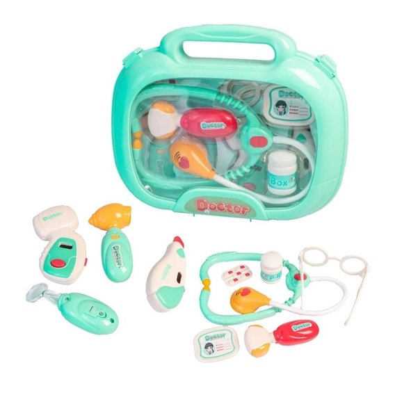 Zestaw Małego Lekarza od Woopie to marzenie każdego małego dziecka, które chce zostać lekarzem! Zestaw zawiera wiele przyrządów do leczenia m.in.: stetoskop, ciśnieniomierz, termometr i wiele innych akcesoriów. Przyrządy posiadają specjalne funkcję przez co dziecko będzie mogło poczuć się jak prawdziwy doktor. Stetoskop ma szerokie, wygodne słuchawki oraz świecącą lampkę, która pulsuje podczas badania i wydaje dźwięk bicia serca. Ciśnieniomierz wskazuje 3 pomiary i ma podświetlany ekran. Termometr wskazuje jedna z 3 temperatur (regulowane pokrętłem) i podświetla wynik pomiaru, a otoskop i lusterko podręczne posiadają światełka. Wszystko to ułożone jest w w wygodnej walizce z uchwytem. Dziecko może rozwinąć wyobraźnie i wcielić się w rolę doktora albo pacjenta!